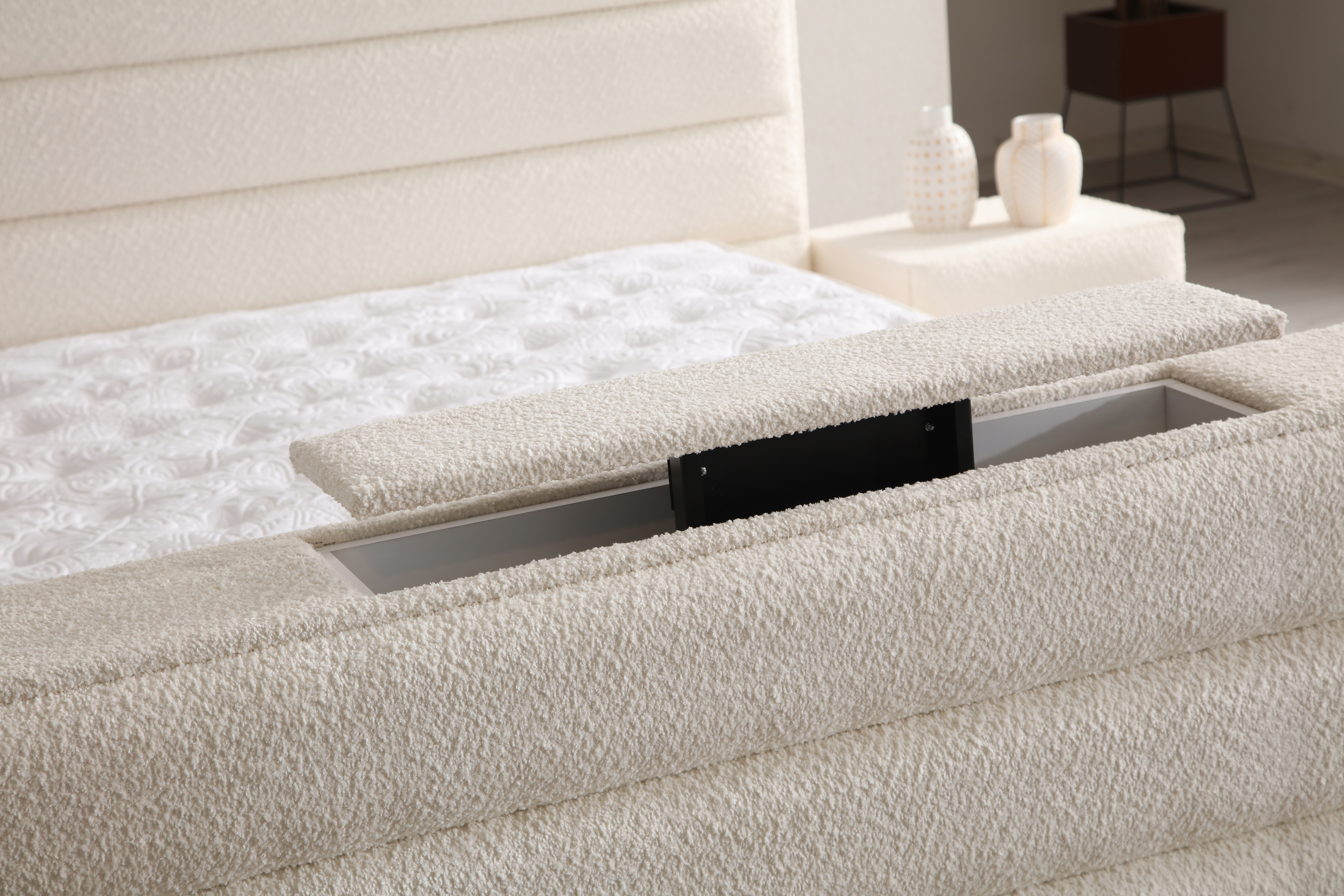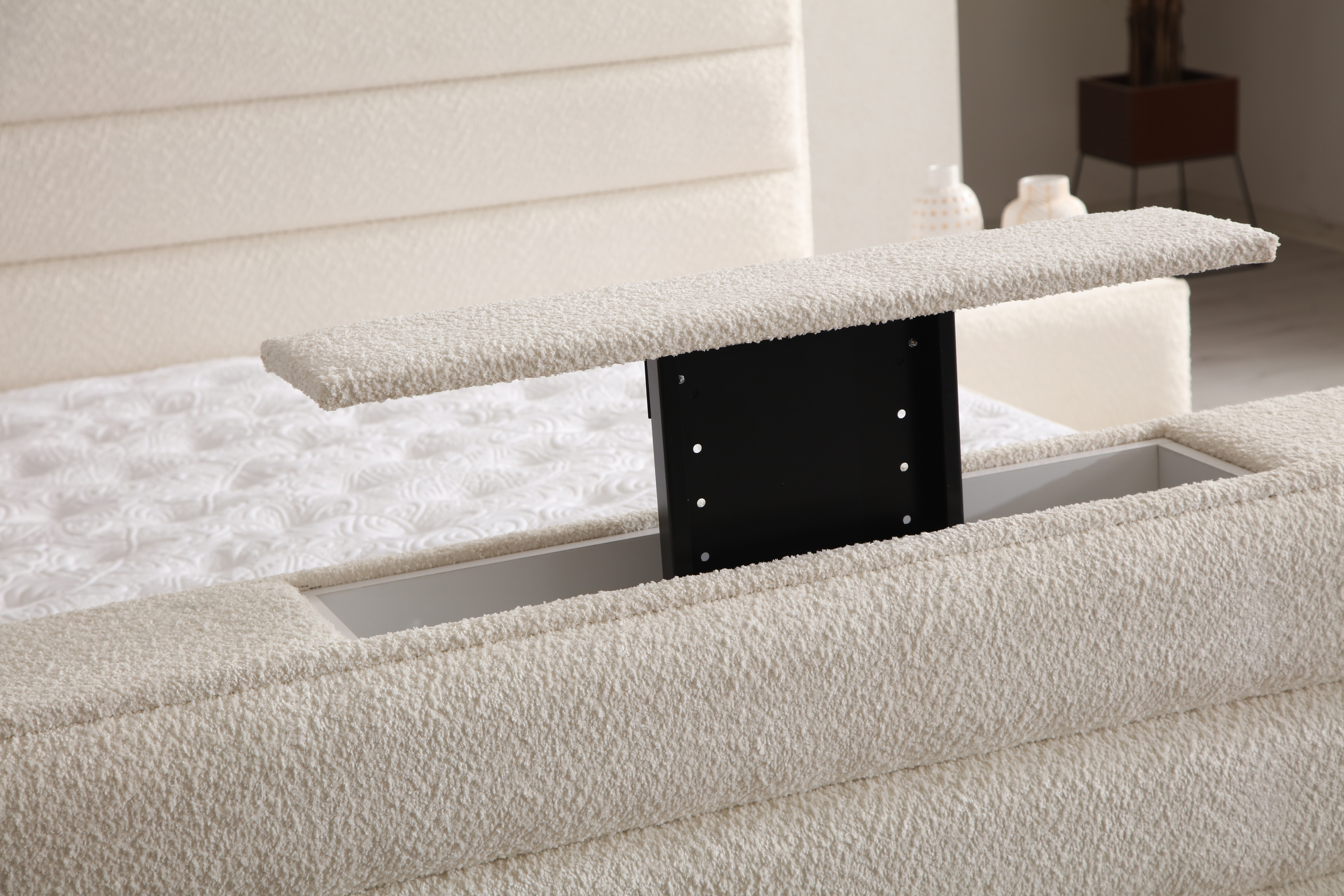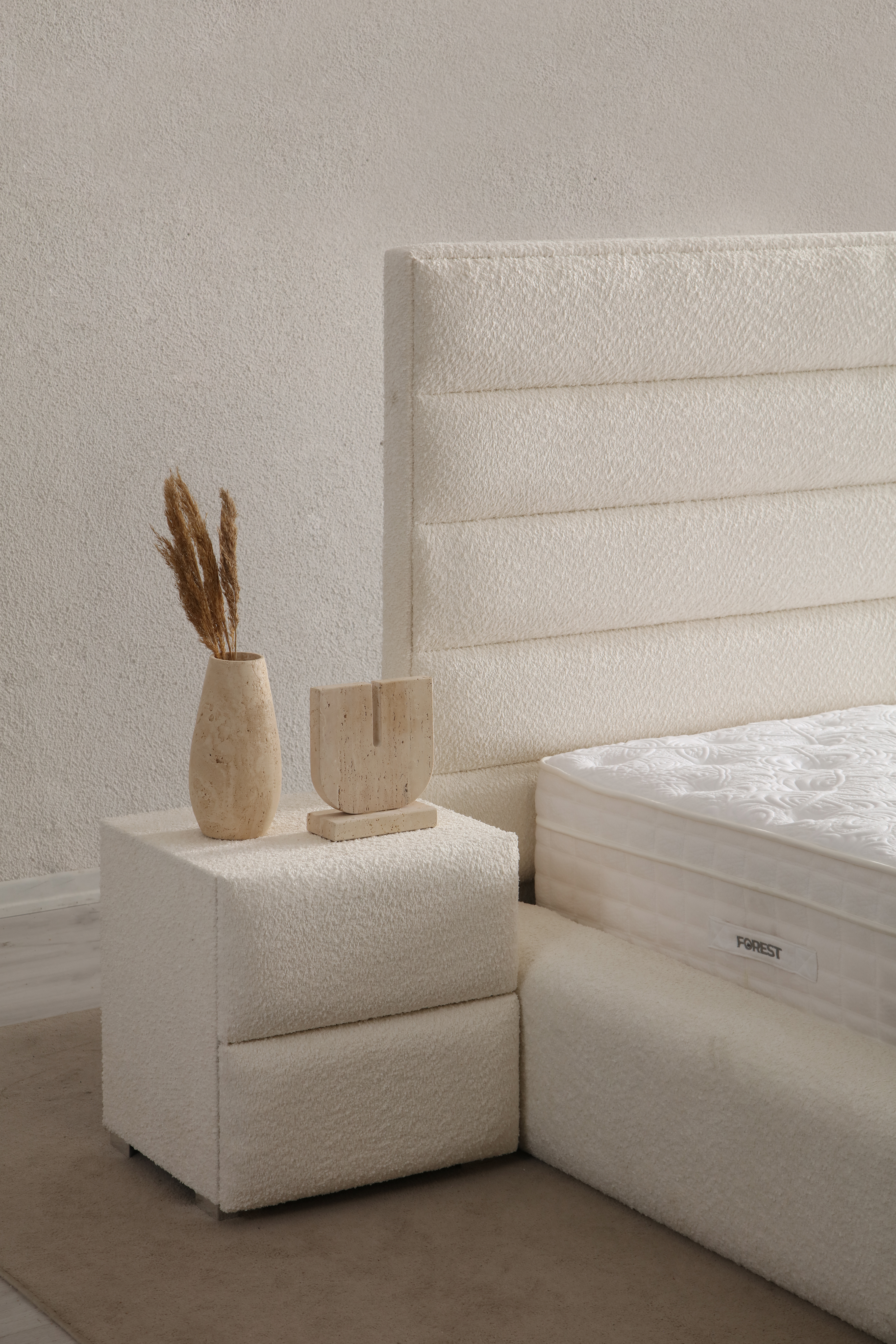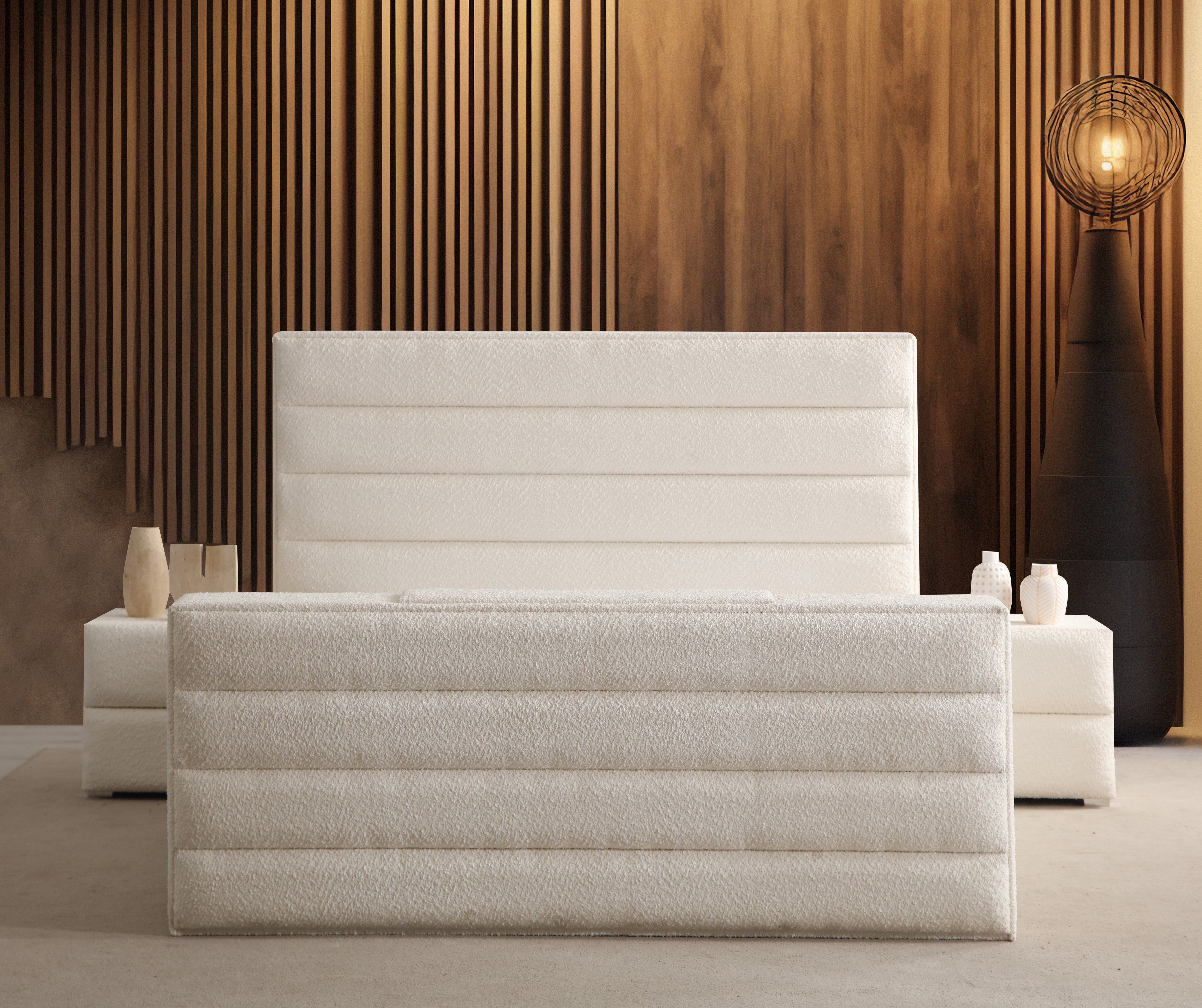 Hochwertige Materialien: Die sorgfältig ausgewählten Materialien sorgen für ein luxuriöses Schlaferlebnis. Der Bezug des Bettes besteht aus hochwertigem Stoff, der nicht nur elegant aussieht, sondern auch langlebig und pflegeleicht ist. Die stabilen Holzfüße verleihen dem Bett einen sicheren Stand und unterstreichen das stilvolle Design.