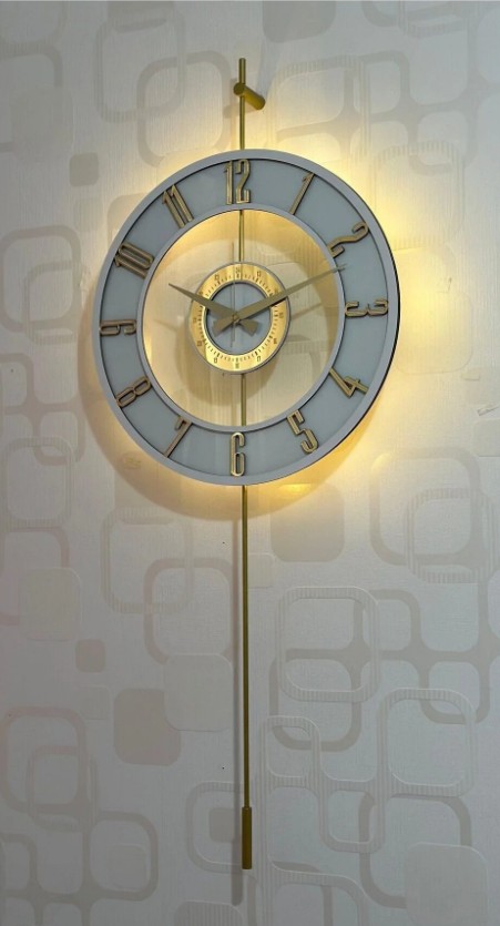 Fava Glaswanduhr mit Leuchte weiß und gold 40x90 cm 1025