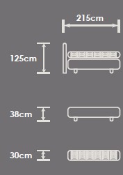 180 x 200 cm (H 125 cm, B 192 cm, T 215 cm)