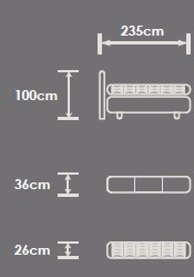 160 x 200 cm (H 100 cm, B 197 cm, T 235 cm)