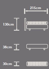 160 x 200 cm (H 130 cm, B 251 cm, T 215 cm)